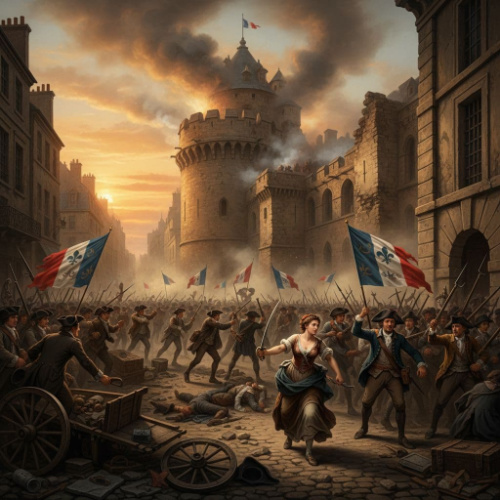 “The Bastille is besieged! The chain yields and breaks; the huge drawbridge slams thundering down. Far down in their vaults, the seven prisoners hear muffled din as of earthquakes; . . . for four hours now has the world bedlam roared; . . . [then] rushes in the living deluge; the Bastille is fallen!”